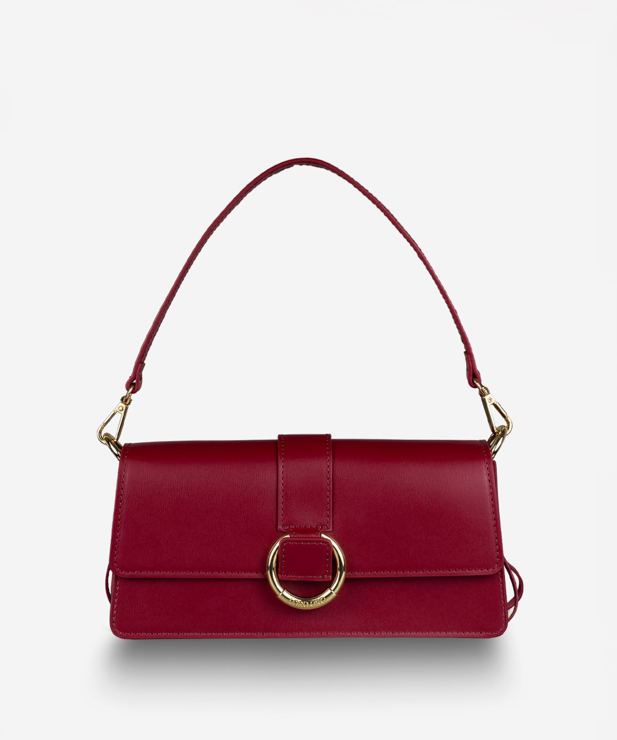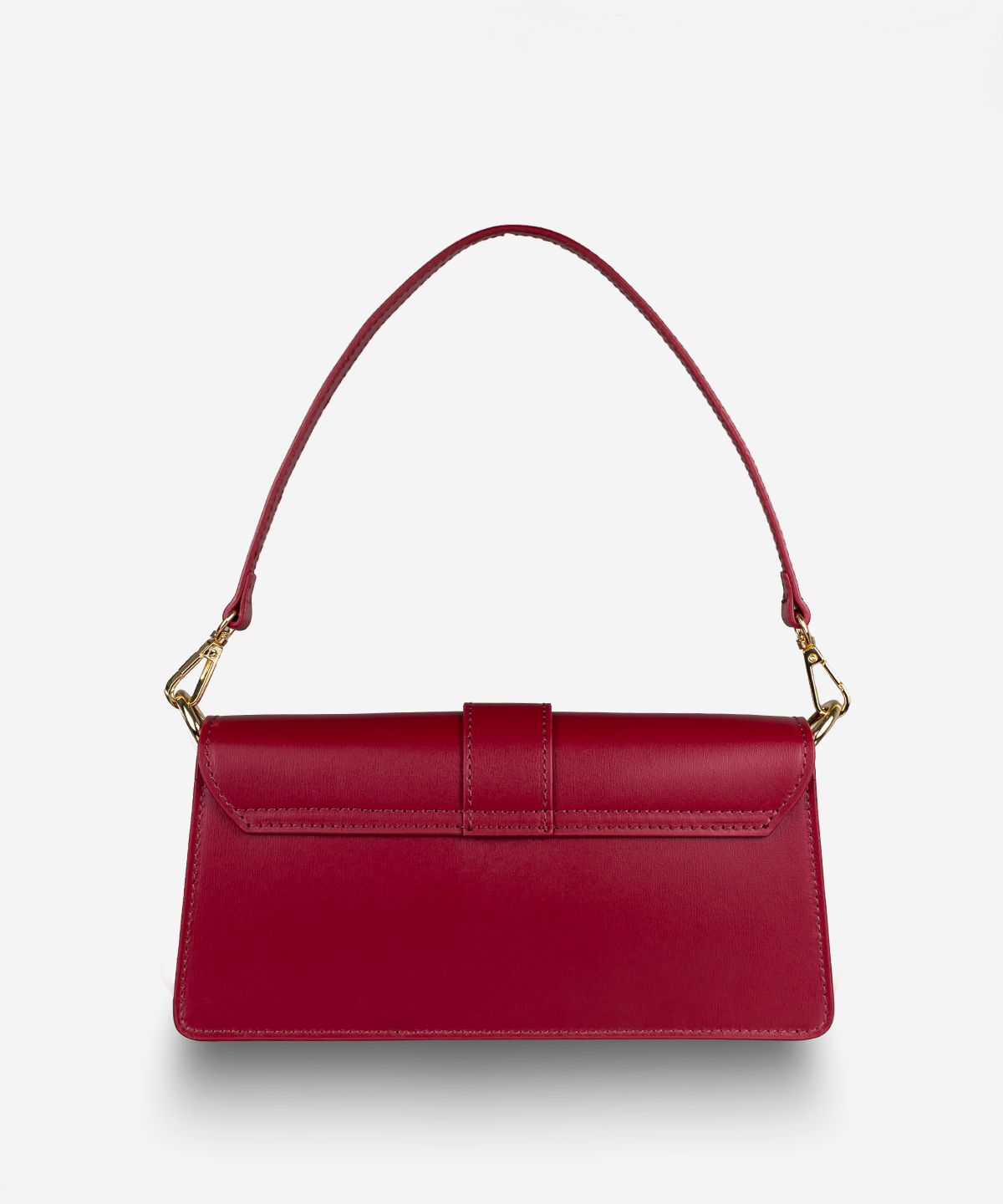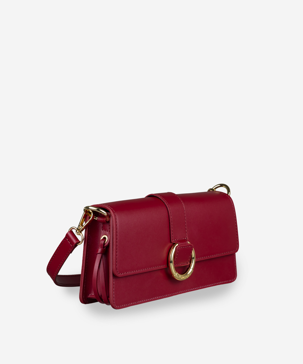 Bria is a smaller elongated handbag with a distinctive golden detail. It has leather fringes on the sides and thanks to the medium-long strap it has several wearing variants. The strap is removable and can be exchanged for a long one, which turns the handbag into a crossbody bag.
