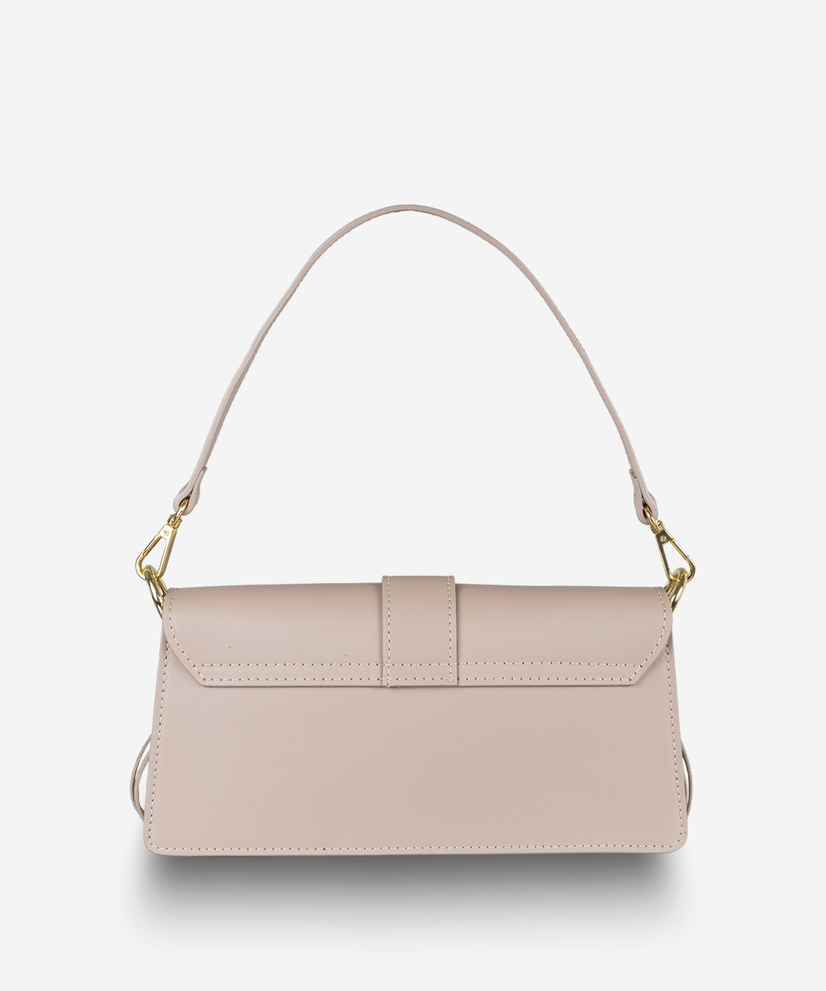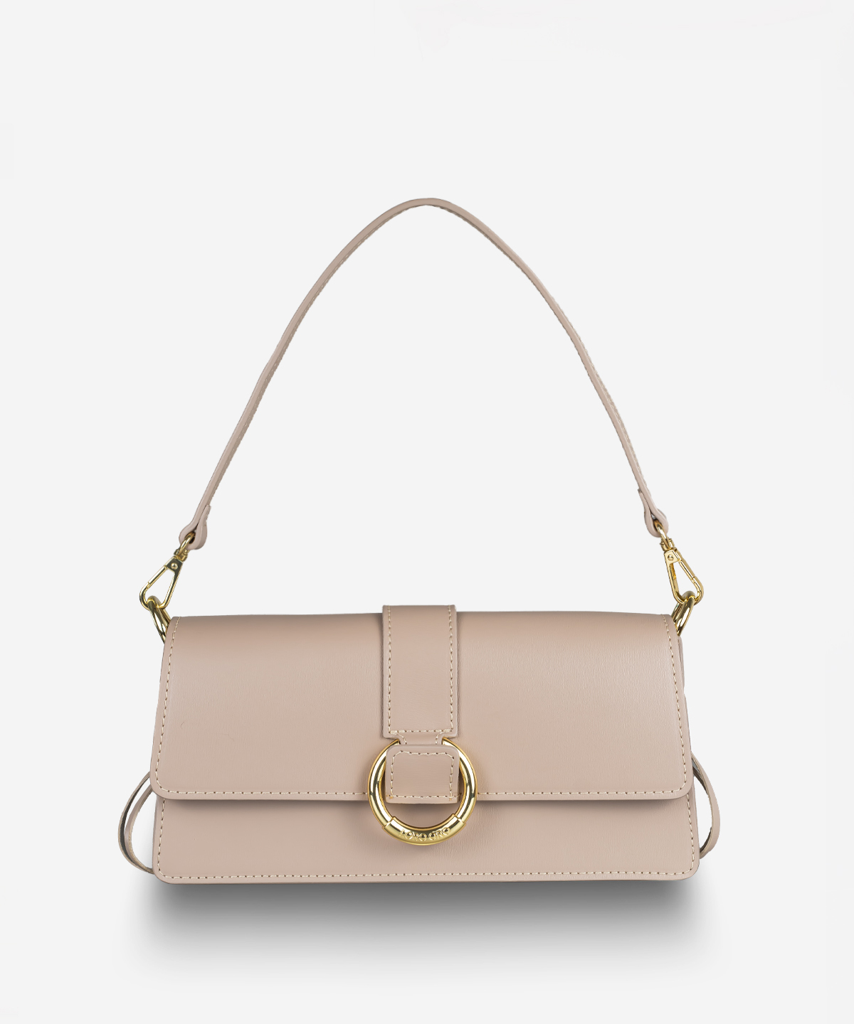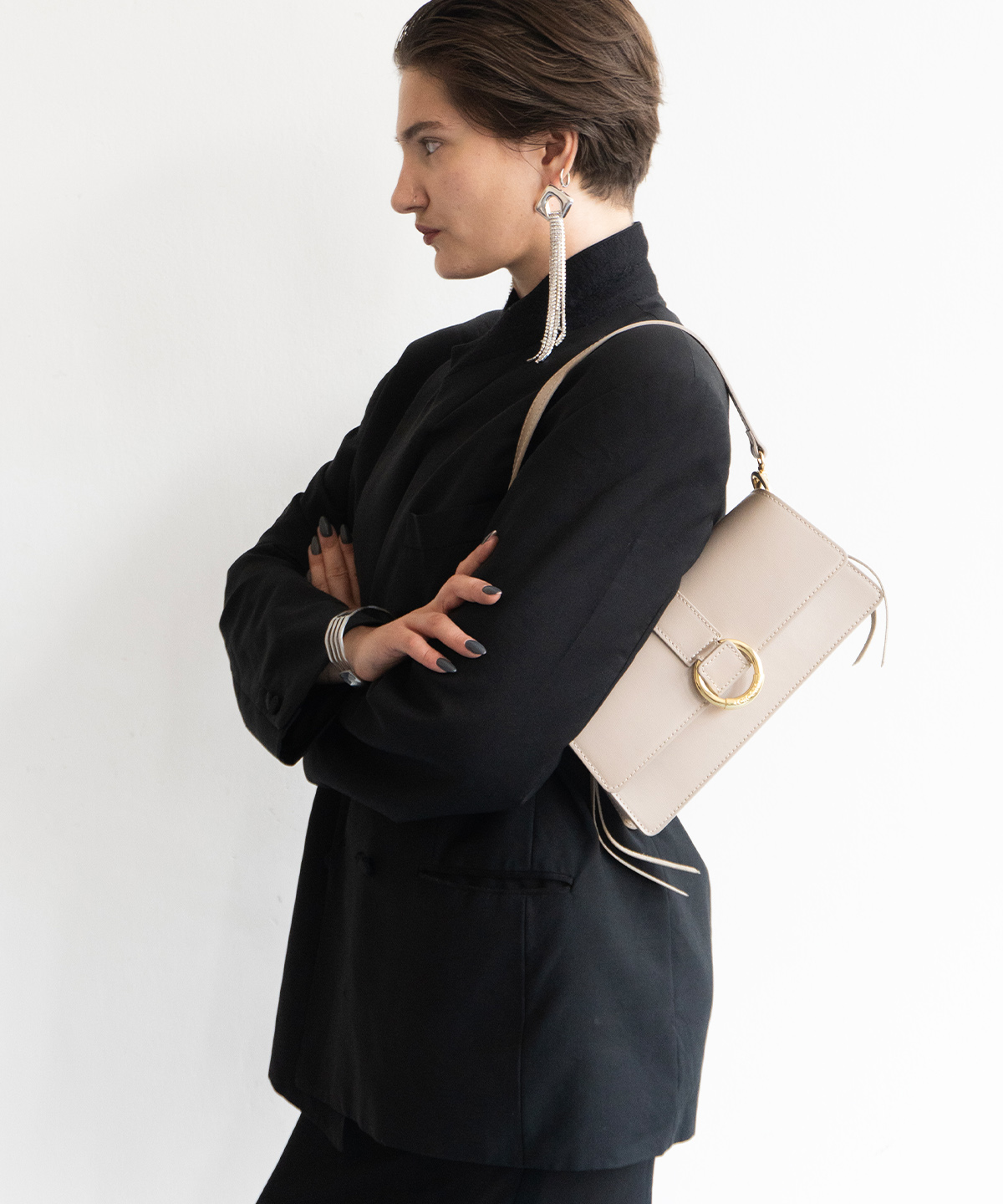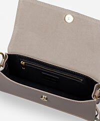 Bria is a smaller elongated handbag with a distinctive golden detail. It has leather fringes on the sides and thanks to the medium-long strap it has several wearing variants. The strap is removable and can be exchanged for a long one, which turns the handbag into a crossbody bag.