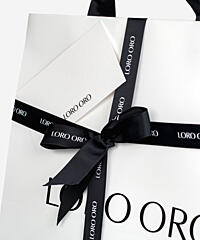 Elegant gift packaging includes a paper bag with logo, decorated with ribbon and the option to add a personal message.