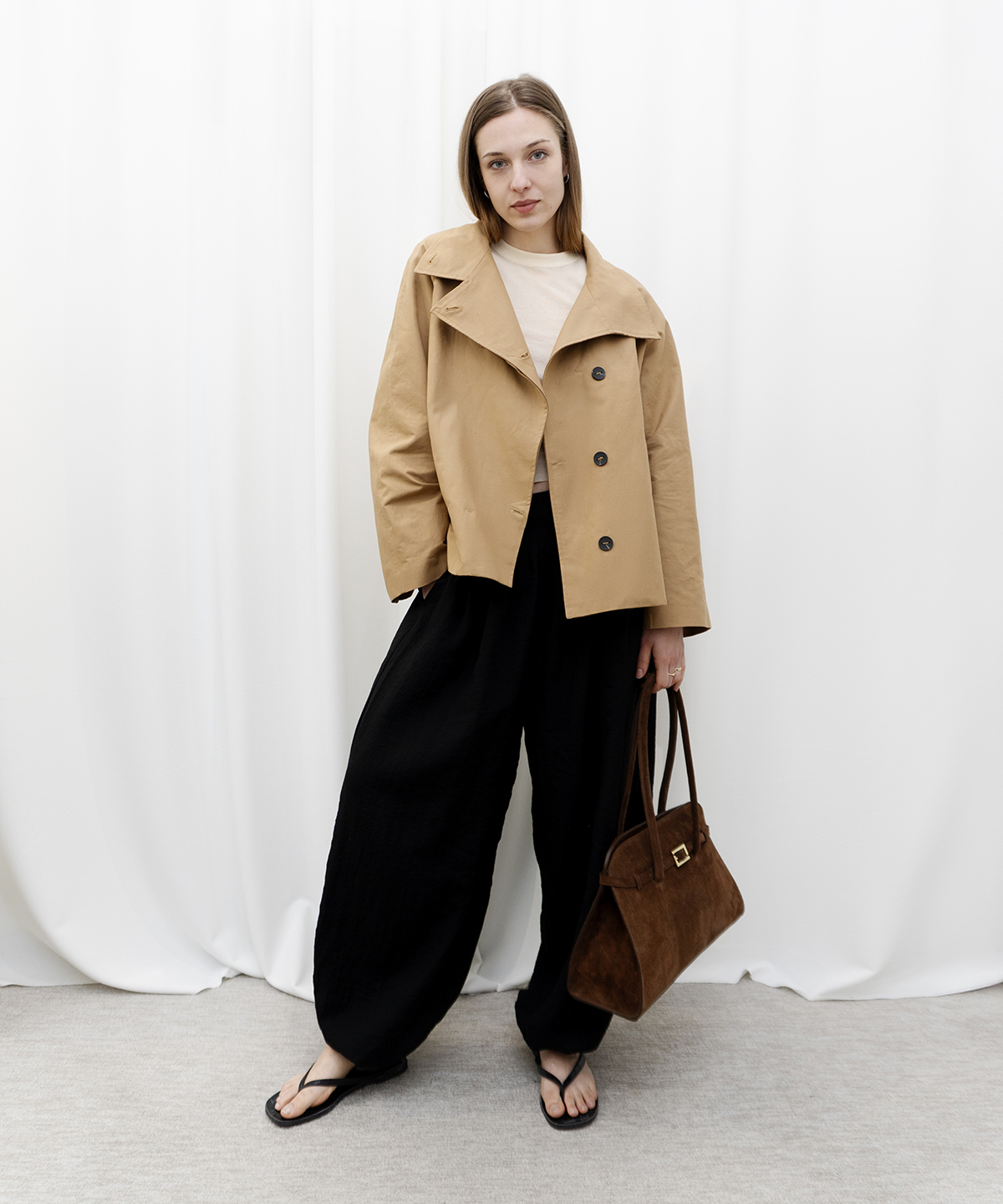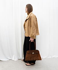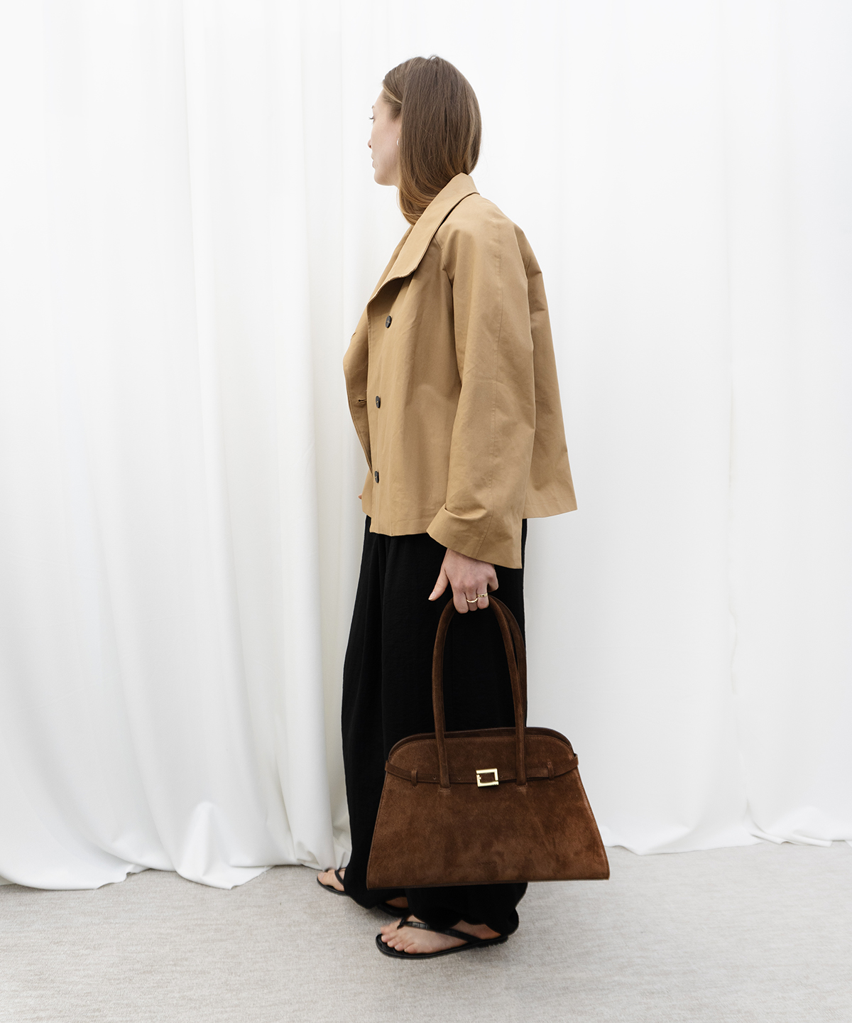 A structured bag inspired by the classic doctor silhouette. The firm base helps it keep its shape and stand on its own. The roomy interior fits a slim 13" laptop/tablet, diary, wallet, keys, a 0.5 l bottle and a compact umbrella. Long handles for hand or shoulder carry; secure top zip closure. Includes a detachable 1.5 cm strap that can also be worn as a belt. Inside: two open pockets and one zip pocket for essentials.