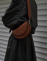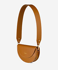 The Moon Saddle handbag can be worn in several ways, thanks to that it offers more styling options! Thanks to the detachable wide strap, which is part of the package, it can be worn on the shoulder, as a crossbody or as a hand-bag. It is decorated with a massive gold clasp and metal details. On the back there is a hand-embossed Loro Oro logo - again in gold.The lining is made from suede & is complemented by a small pocket on the back of the handbag.