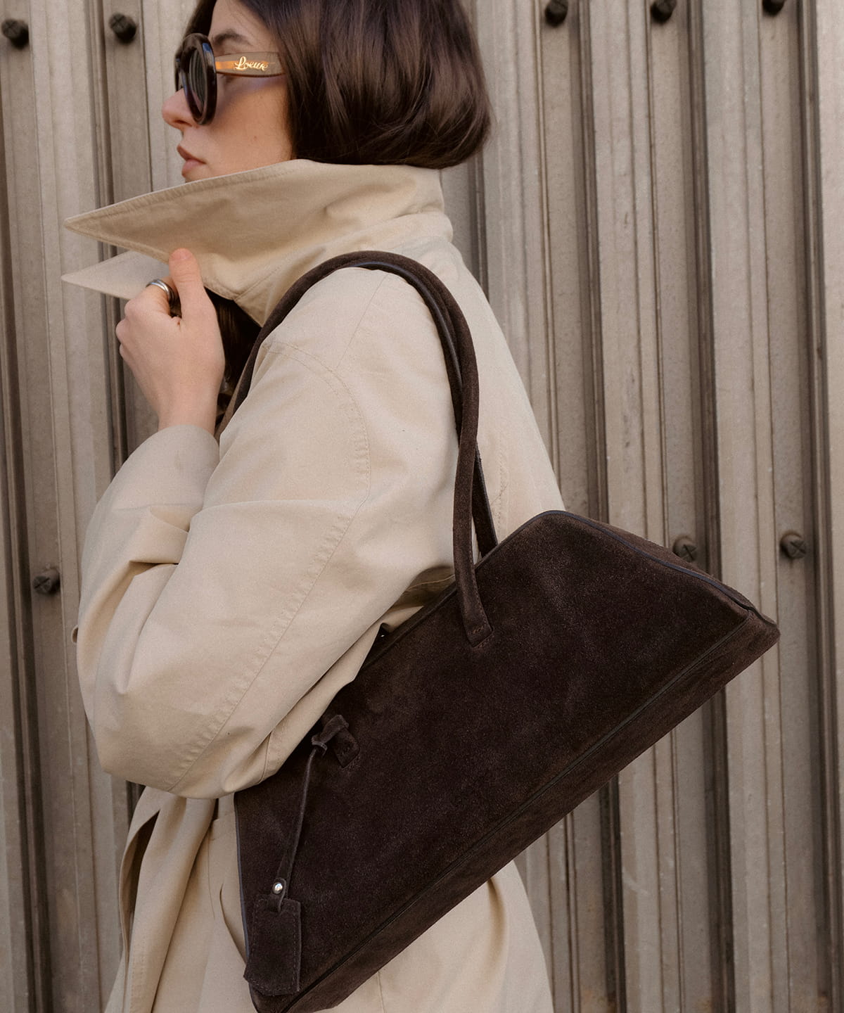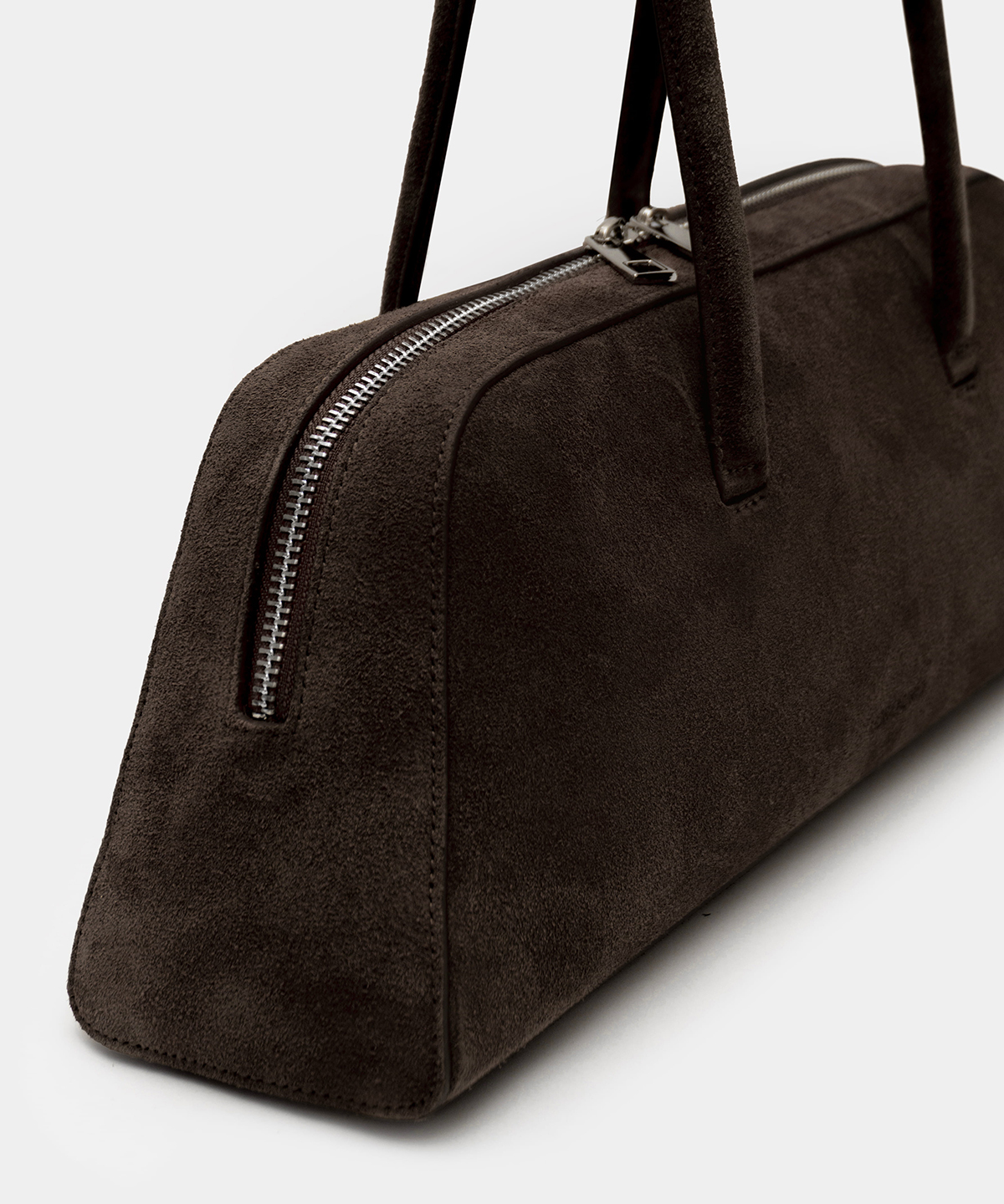 The SORA handbag brings a balance between elegance and functionality. Its clean lines, elongated shape and soft Italian suede in a dark chocolate shade create a timeless accessory for everyday wear. The long handles allow comfortable carrying over the shoulder, making it an ideal choice for daily wear as well as evening occasions. Elegant silver-tone hardware completes the design.